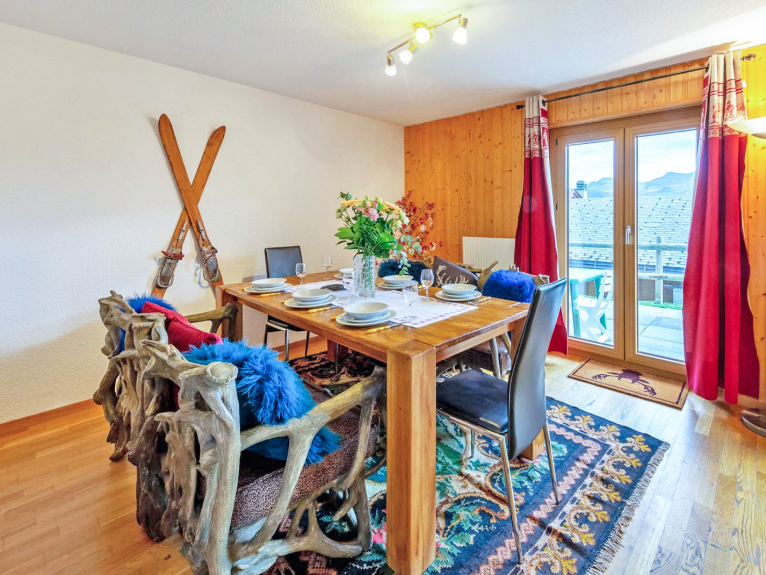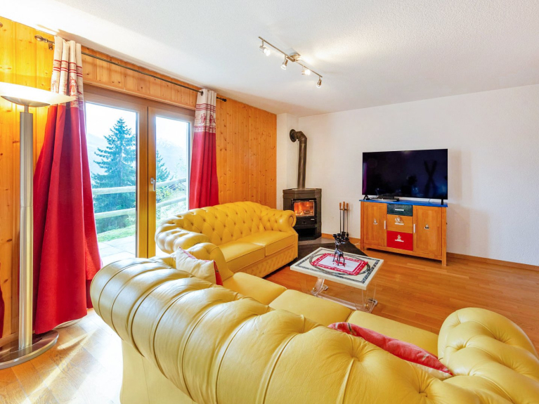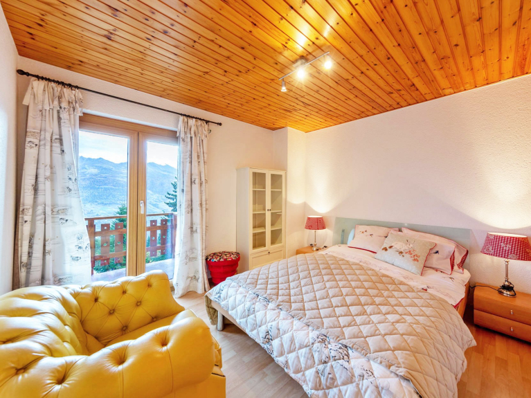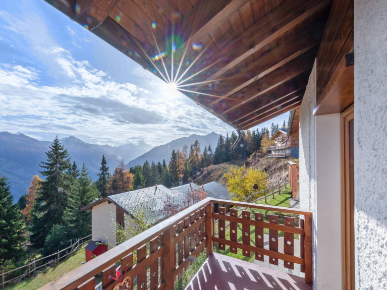 Chalet para esquiadores con excelentes vistas de las montañas del Valais. El chalet contiguo está situado en el corazón de las montañas, a 1.820 m de altitud, en las pistas de Les Collons, en el dominio esquiable de los 4 Vallées. Los esquís se ponen delante del chalet y se llega esquiando hasta él. El chalet se encuentra a unos 180 m de la carretera; en invierno, el acceso al chalet se realiza a pie por una pista de esquí fácil (pista azul). Si necesita transportar su equipaje, podemos prestarle un trineo gratuitamente. Posibilidad a petición: transporte de equipaje por la compañía de remontes, de pago (servicio externo).