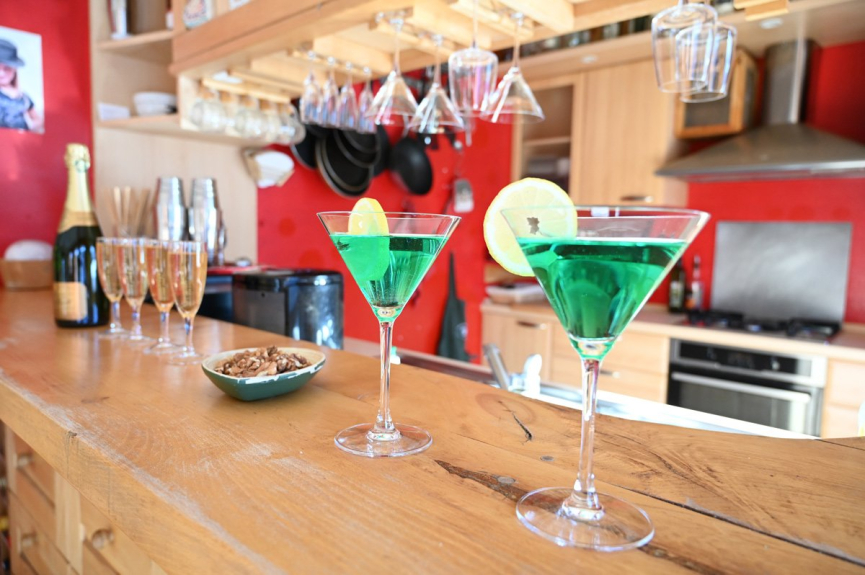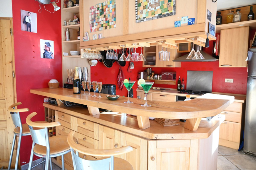 Cocina americana, comedor para 12 personas, gran salón con estufa de leña, proyector de vídeo y altavoces Bose en todas las habitaciones para disfrutar de magníficas veladas en familia.