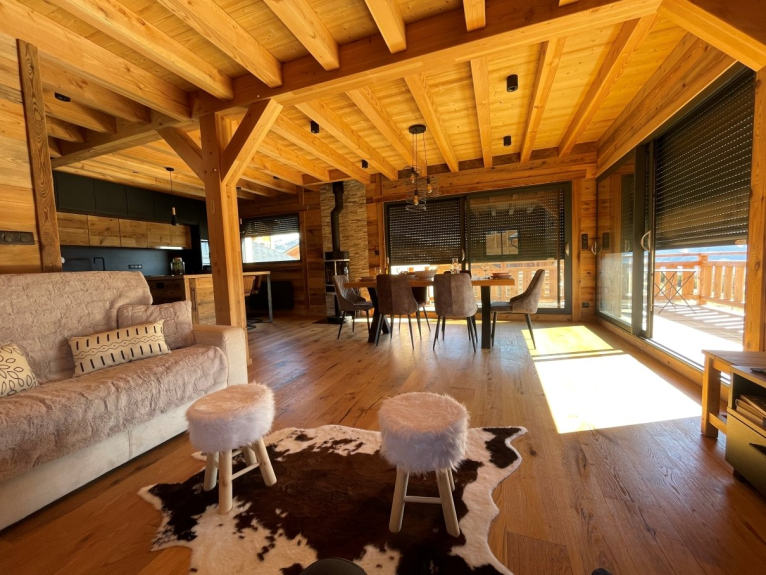 Bienvenido a nuestra casa, una fusión perfecta de elegancia contemporánea y encanto rústico. Construido en 2023, este chalet de 150 m2 para 10 personas ofrece una experiencia vacacional inolvidable, donde el confort y la tecnología se funden armoniosamente con el cálido ambiente de la madera. En el corazón de la Cerdaña, nuestro chalet de montaña destaca por su carácter único, mezclándose perfectamente con el entorno natural que lo rodea. No pierda la oportunidad de disfrutar de una experiencia única en un entorno natural espectacular. Entre en un mundo donde el calor no es sólo una cuestión de temperatura, sino una sensación que le recibe nada más cruzar nuestra puerta. La madera antigua, con sus ricos matices y variadas texturas, crea un ambiente cálido y relajante. Inmediatamente se verá envuelto en una atmósfera reconfortante que le hará sentirse como en casa lejos de casa.