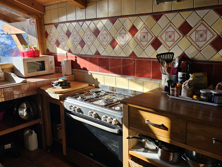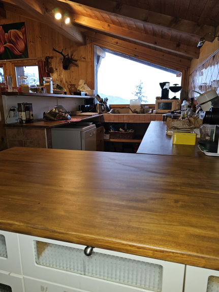 Gran plaza de aparcamiento para 5 coches.180m2 plana,planta baja Hall de entrada, pasillo, puerta de la sala de esquí, puerta de la sala de estar, pasillo con aseo, amplio salón con cocina americana bien equipada.85m2, chimenea, balcón, vistas impresionantes.WIFI, escalera al primer piso.