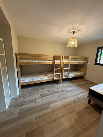 1 habitación con 1 cama doble (140 cm) y 4 literas (90 cm)
