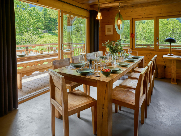 Los grupos de hasta 18 personas pueden reservar el Chalet La Chandelle junto con el Grand Mazot La Chandelle (2-4 veraneantes) y el Petit Mazot La Chandelle (dos veraneantes).