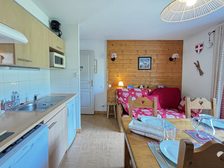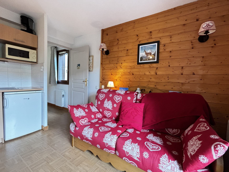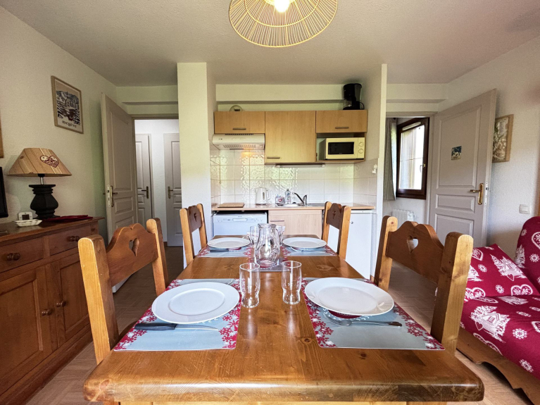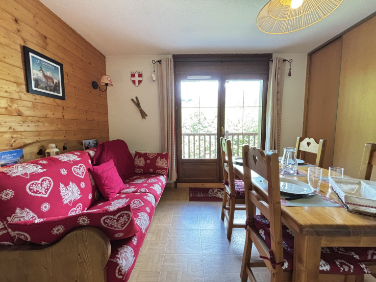 La residencia Les Chalets des Evettes con piscina está situada al pie de las pistas del Espace Diamant y de la escuela de esquí. Centro del pueblo a 3 km.