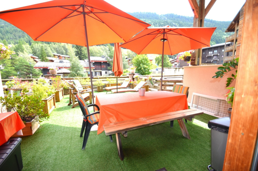 Amplia terraza con vistas a las pistas y acceso por puerta de terraza.