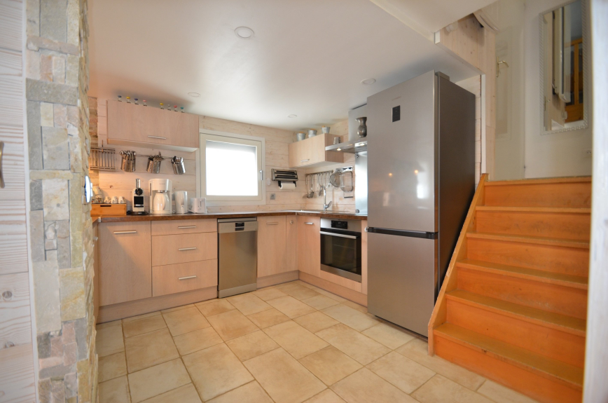 Piso dúplex de 6 camas, totalmente reformado, 60 m2, 2 dormitorios con cama de matrimonio, un dormitorio con 2 camas individuales, 2 baños, 2 aseos, cocina amueblada abierta al salón, lavadero con lavadora y secadora.