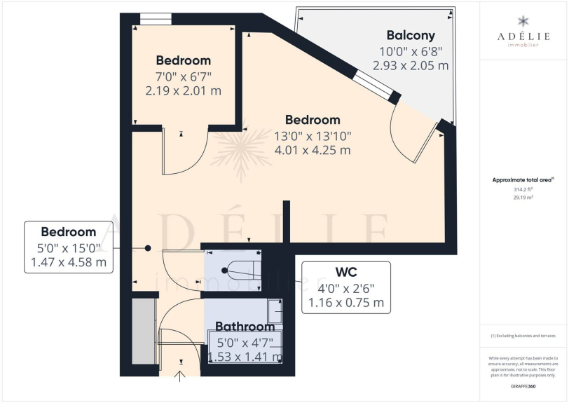 BQA04: T2 para 4/5 personas, 30 m2, a nivel del jardín.