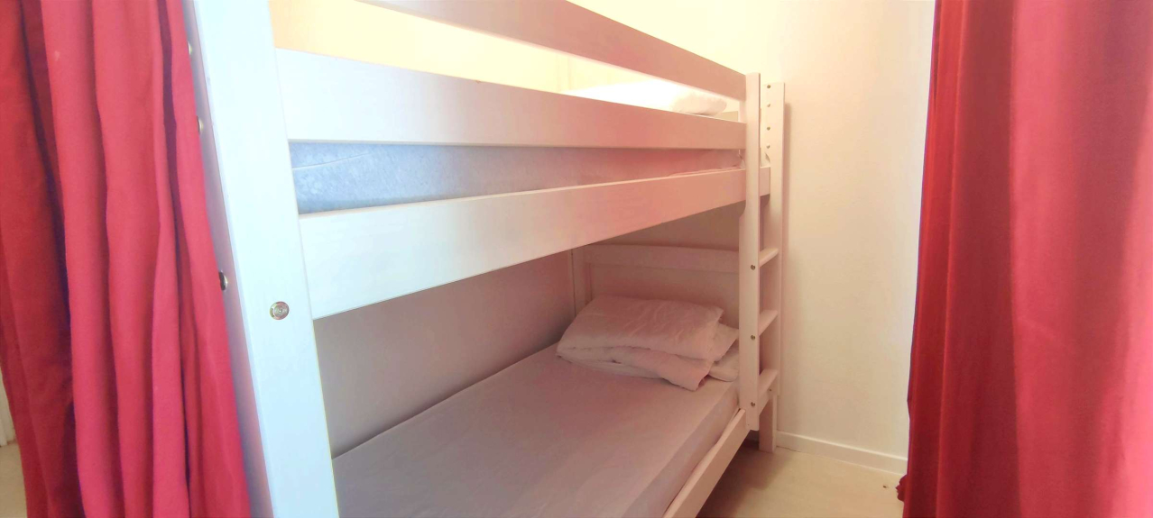 1 sofá cama (160 cm) y 2 literas frente a la cocina americana. Acceso a Internet incluido.