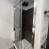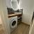 Cuarto de ducha con inodoro, calentador de toallas, lavadora y secador de pelo.