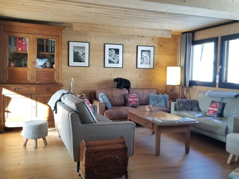 Este espacioso salón reúne todas las cualidades de un encantador chalet de 4 estrellas, combinando el carácter antiguo de los muebles de montaña con el confort contemporáneo de un chalet de montaña.