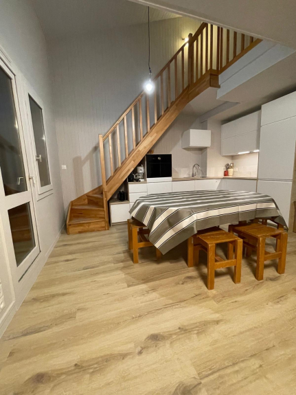 Es un dúplex con 2 habitaciones dobles y una habitación dormitorio para 6 personas.