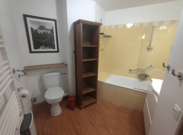 Consta de un dormitorio con 2 camas individuales, un salón con 1 sofá cama, una cocina americana con comedor, un WC separado y un cuarto de baño. Balcón con vistas a las pistas orientadas al norte. Guardaesquís