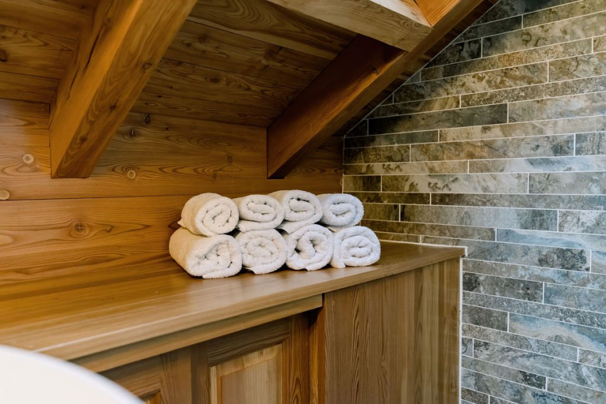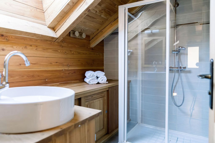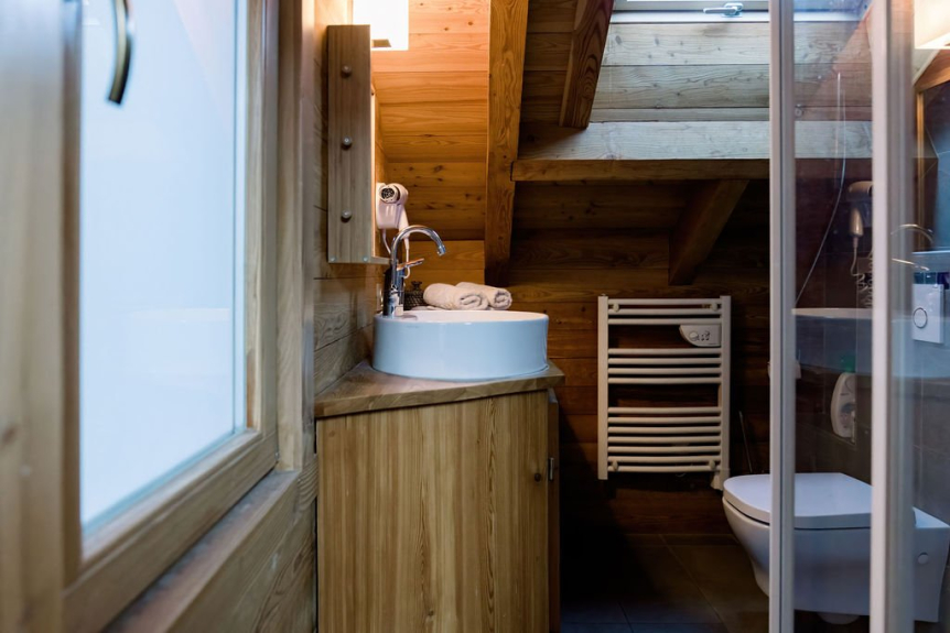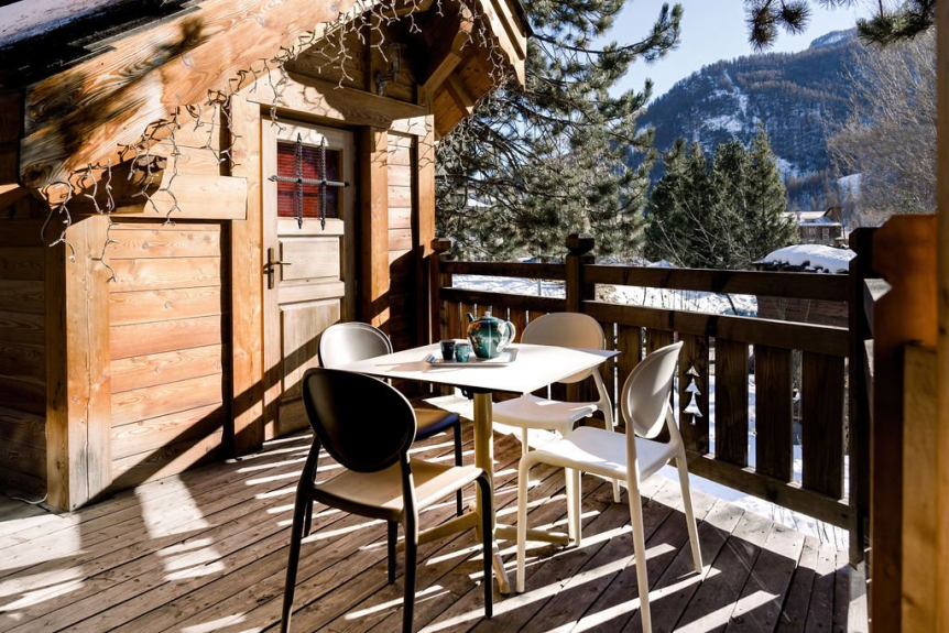 Le MAZOT es una magnífica "cabane": un pequeño chalet de alerce, situado en la terraza de la ANNAPURNA, que ofrece la 6ª habitación con su propio cuarto de ducha, wc, TV de pantalla plana, con una fantástica vista de las pistas.
