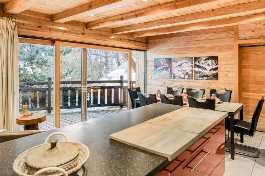 5 habitaciones, 4 cuartos de baño, 5 WC, 2 estufas de leña, 7 televisores, fibra Wi-Fi, parking, 2 grandes terrazas y balcones con una magnífica vista de la pista Luc Alphand, orientación sur, muy tranquilo.