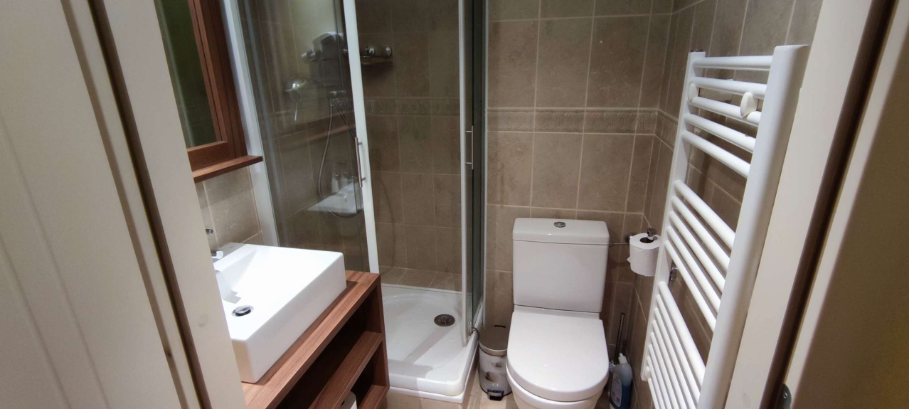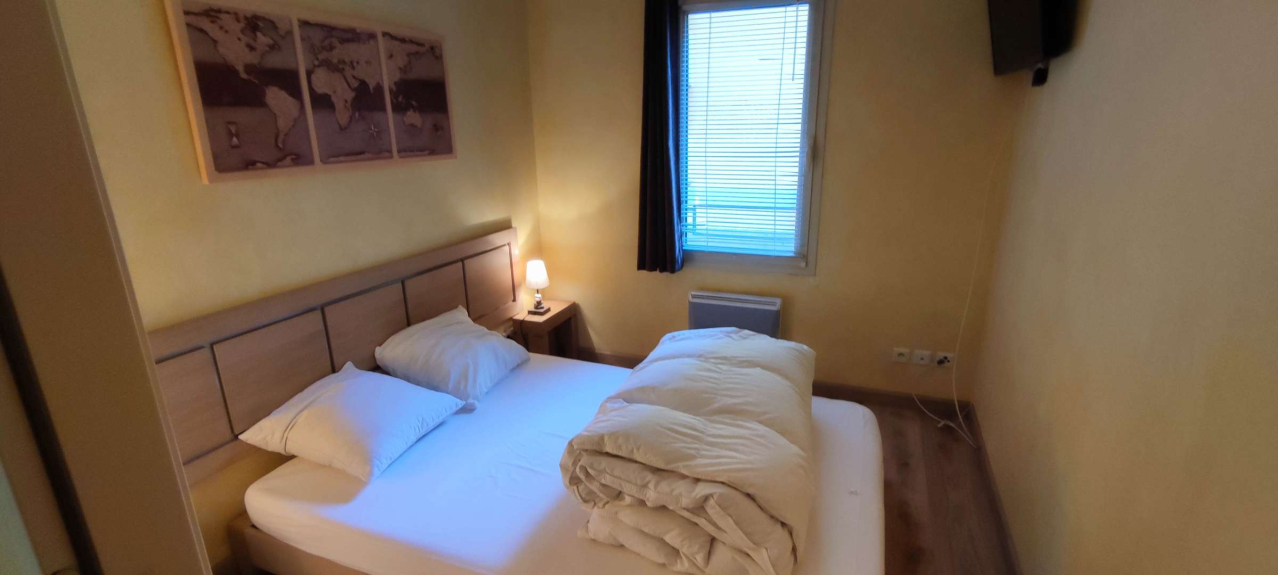 Consta de 2 habitaciones con 1 cama doble (140cm) y 2 camas individuales (90cm), un salón con sofá cama (160cm). Cocina americana y comedor, WC separado, cuarto de baño, 1 cuarto de ducha/WC.