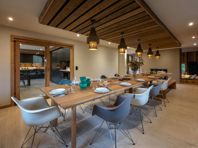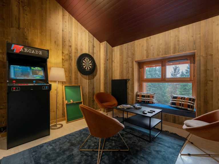 El Chalet La Parenthèse dispone de agradables zonas comunes, como un cómodo salón con sofá y sillones alrededor de una chimenea central, un home cinema y una sala de juegos. Para sus comidas, puede elegir entre una majestuosa mesa de comedor junto a la espaciosa cocina totalmente equipada, y otra en la soleada terraza.