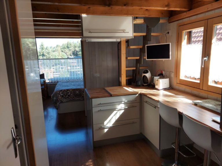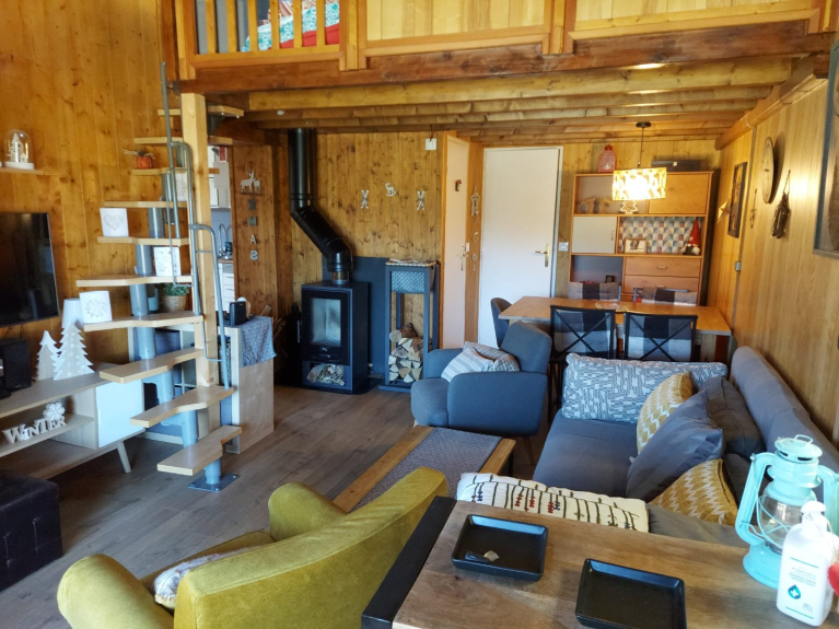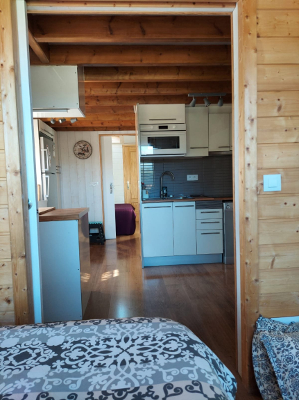 Chalet de madera orientado al sur, 90 m2, 6 plazas. CONEXIÓN WIFI.