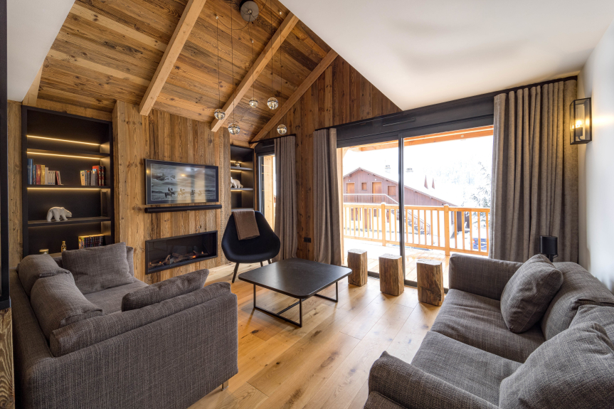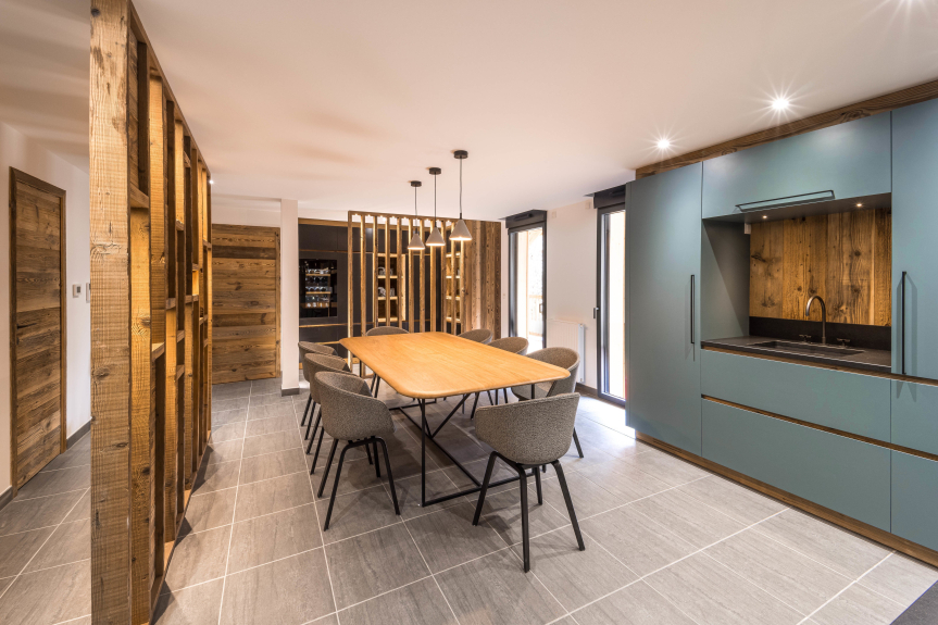 Este apartamento tiene capacidad para 8 personas y consta de una gran sala de estar (55m2) con cocina americana y comedor, un acogedor salón con chimenea.