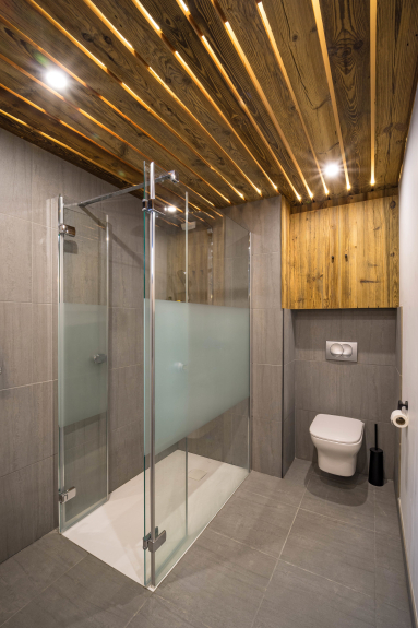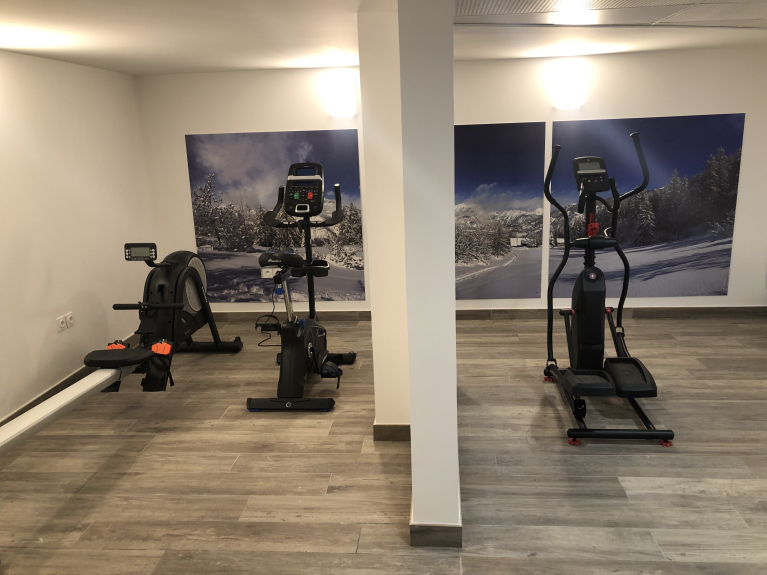 Aparcamiento cerrado, sala de deportes y guardaesquís.