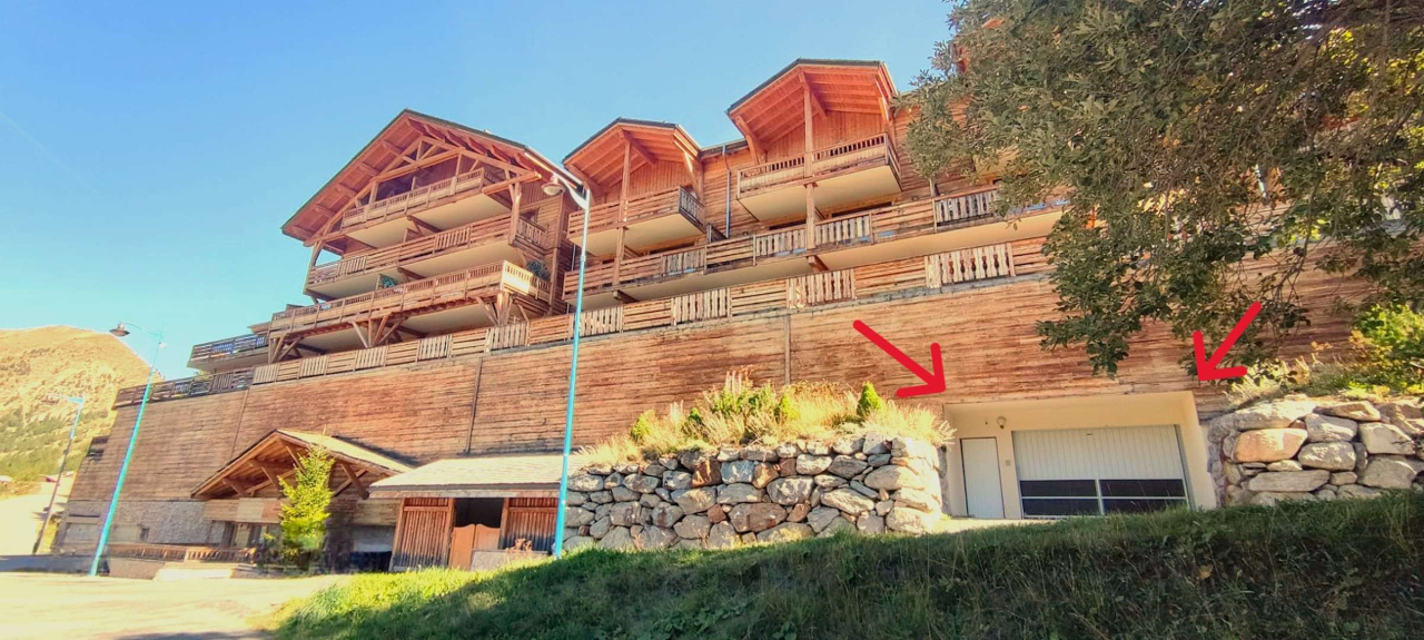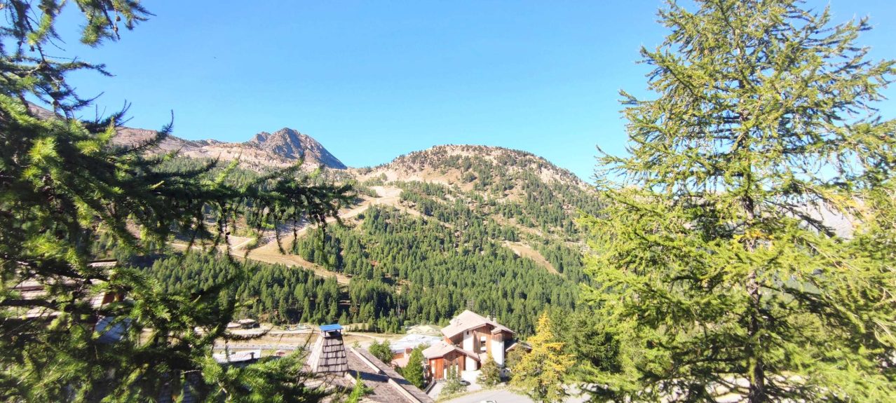 Situado a 2100 m de altitud, en el "Hameau" (ladera sur de la estación - a 1 km del centro de la estación), en la urbanización "Les Chalets du Mercantour".