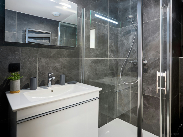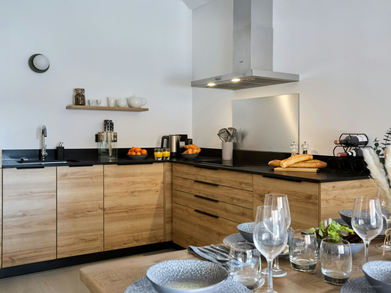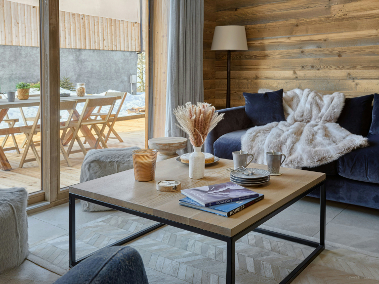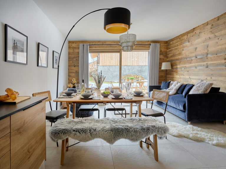 El salón de planta abierta es moderno, con toques de madera que reflejan su carácter alpino. El confortable salón está separado de la cocina por una mesa de comedor lo suficientemente grande como para acomodar a todo el grupo. Todos los electrodomésticos y utensilios están incluidos, para que cocinar durante sus vacaciones sea un verdadero placer.