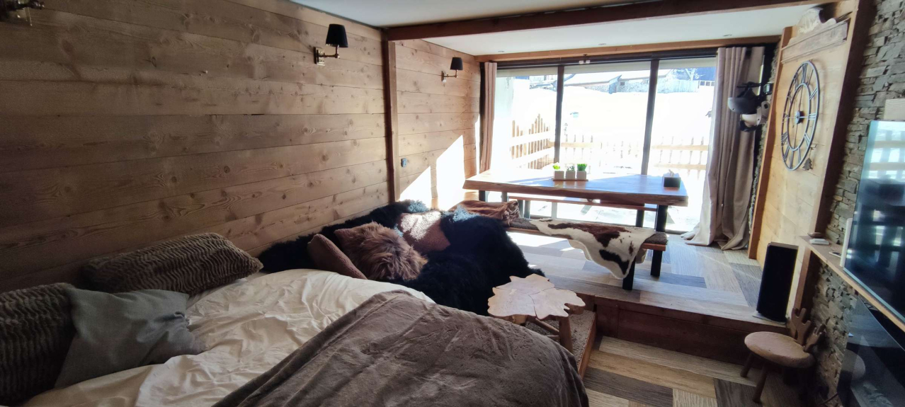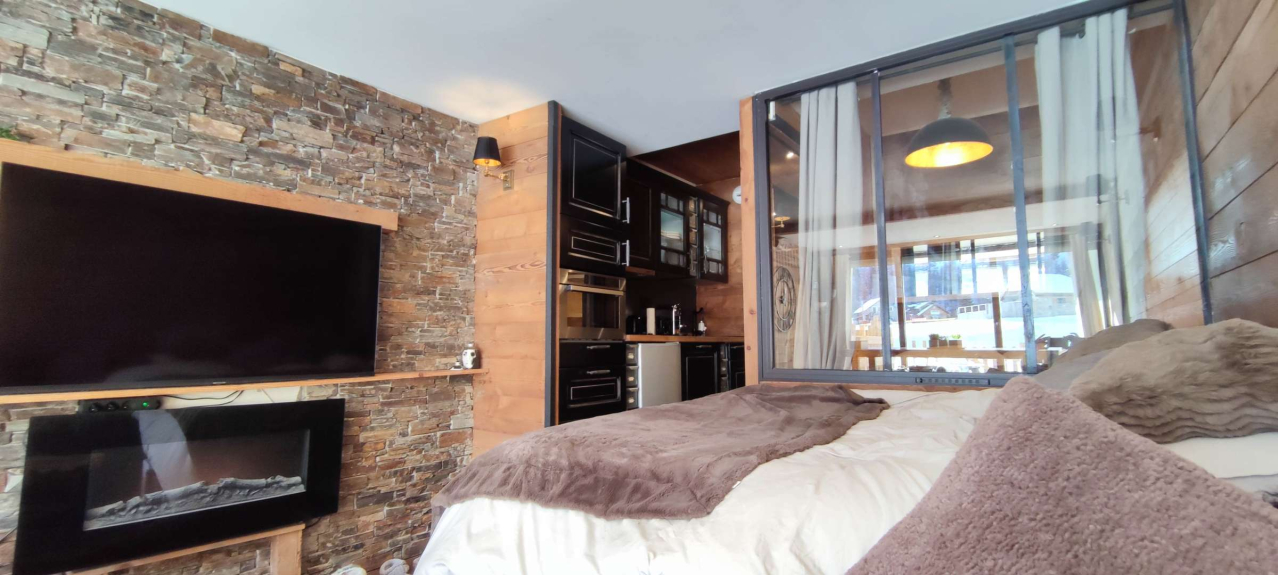 VRR6 Estudio en planta baja con bonita terraza, renovado con un aire de montaña. Acceso directo a las pistas. Ambiente cálido para esta propiedad. 2 camas dobles, 1 cuarto de baño con WC, zona de comedor y cocina totalmente equipada. Edificio situado en el complejo "Front de Neige", a pie de pistas, justo al lado de la Galerie Marchande y de las actividades de la estación. Acceso a Internet incluido.