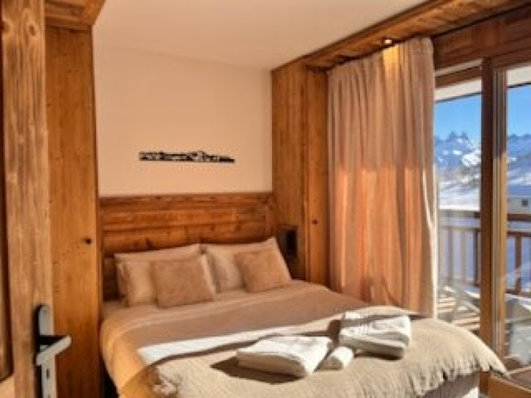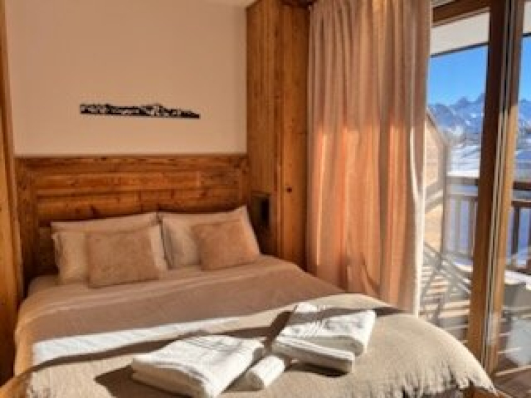 Orientado al sur, con 2 grandes balcones, amueblados con tumbonas y una mesa que permiten contemplar las Aiguilles d'Arves.