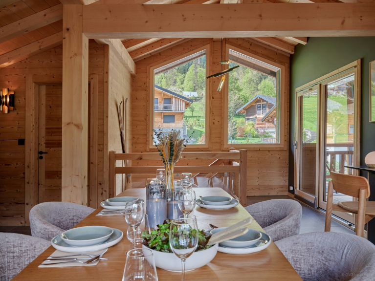 El Lodge Skadi ofrece a sus ocho huéspedes interiores luminosos y comodidades modernas para unas vacaciones activas y relajantes en el centro del pueblo de Essert-Romand.