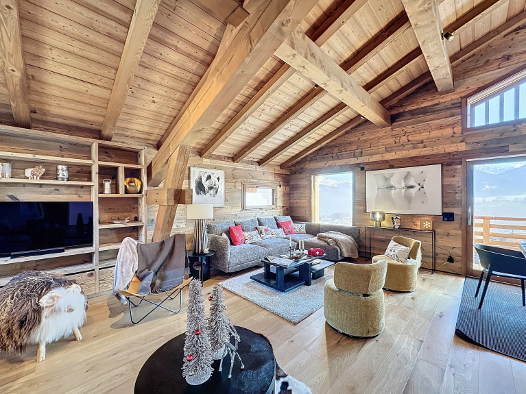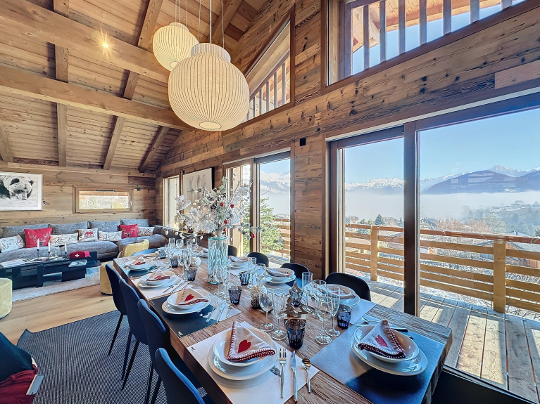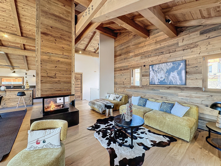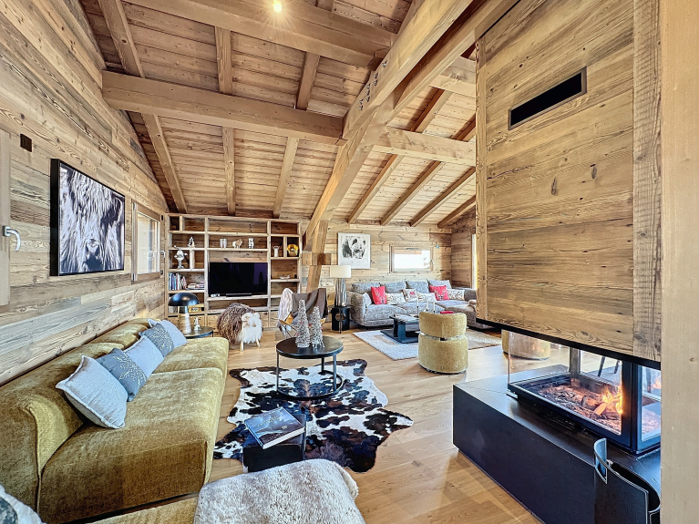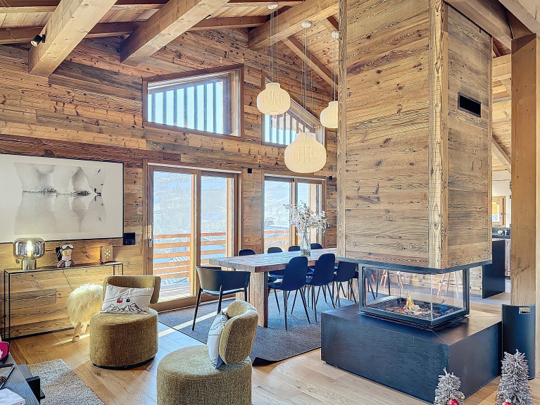 El ambiente es cálido y refinado, con amplias zonas de estar bañadas de luz. Acomódese frente a la chimenea y déjese seducir por la belleza de los Alpes.