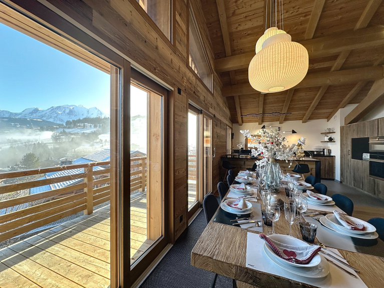 Un chalet excepcional situado en Combloux, frente al majestuoso Mont Blanc. Diseñado para alojar hasta 12 personas, este chalet de madera combina el encanto auténtico con el confort moderno.