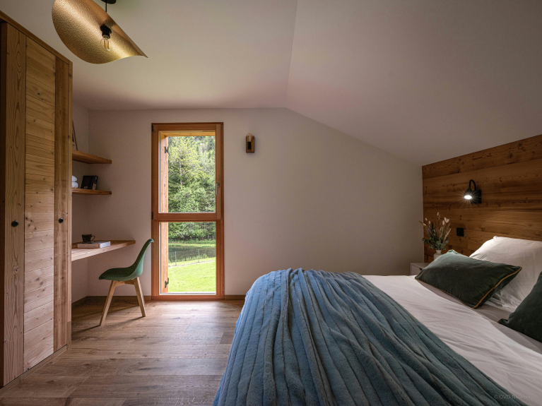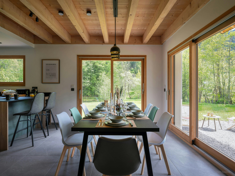 Las mayores ventajas del Chalet Ormiages se revelan en los meses de verano: un jardín grande, llano y seguro, con columpios, tobogán y mesa de ping-pong, una vista impresionante de las cumbres y la proximidad de la naturaleza alpina.