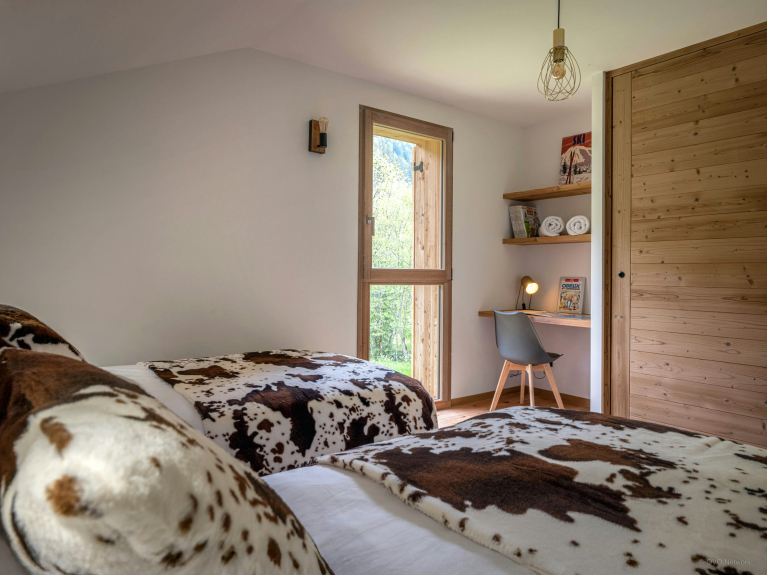 Este chalet para ocho personas situado en las afueras de Saint-Gervais es perfecto para una familia. Con sus cuatro dormitorios, incluido un dormitorio para niños, es fácil encontrar espacio para todos, sobre todo porque la sala de estar y el cuarto de baño de la planta baja son accesibles en silla de ruedas. El sofá del salón puede convertirse fácilmente en una cama supletoria.