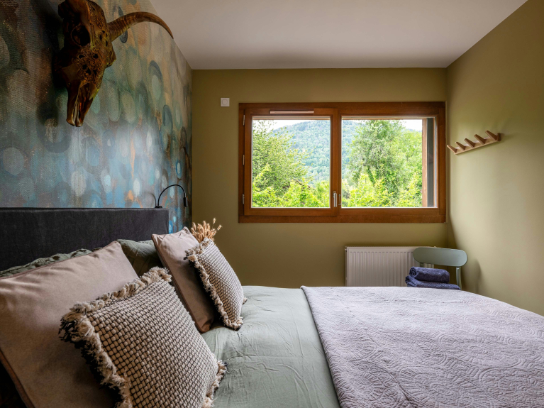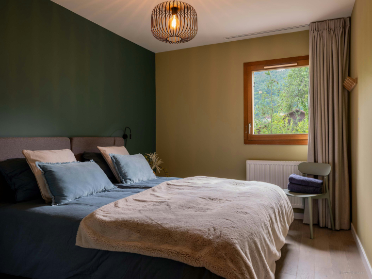 Un pasillo conduce a las tres habitaciones dobles, cada una con una decoración personalizada. Frente a ellas, le esperan dos cuartos de baño, uno con ducha y el otro con bañera y lavadora-secadora. También se puede acceder a un aseo independiente desde el vestíbulo.