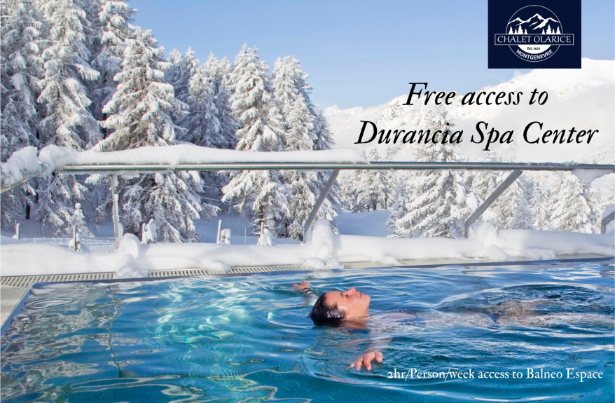 Como huésped del Chalet Olarice, disfrutarás de acceso gratuito al Espace Balnéo del centro de spa DURANCIA – 2 horas por persona, por estancia. Es la forma perfecta de relajarse después de un día en las pistas o recorriendo los senderos de montaña.