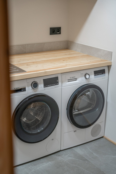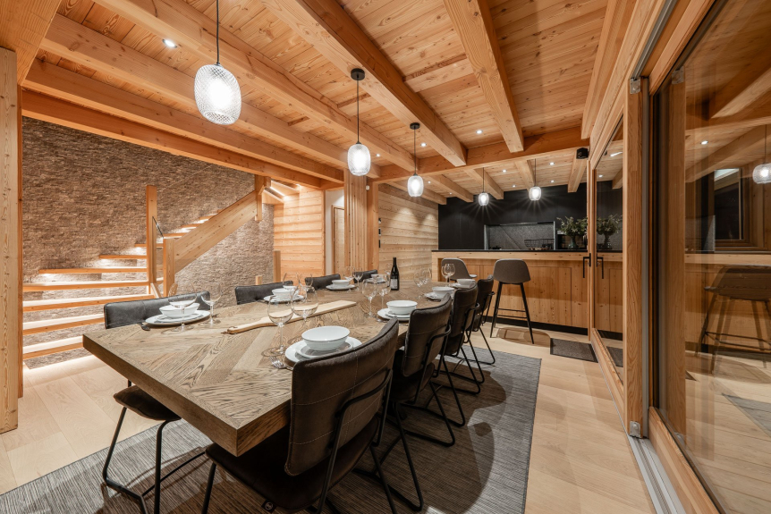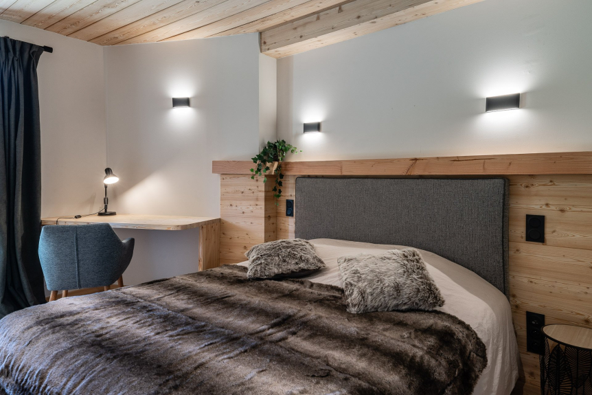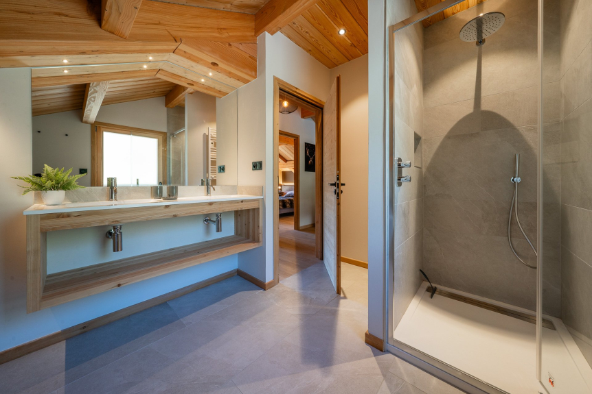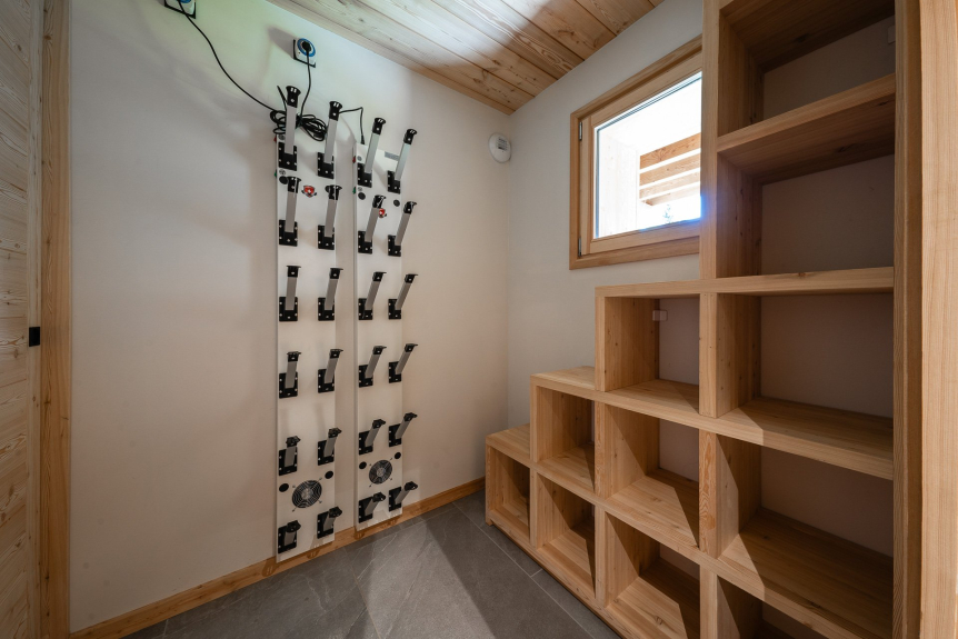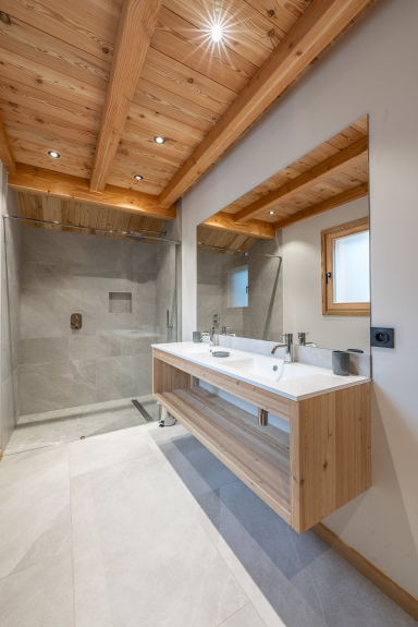En la planta baja, encontrará un garaje, un lavadero y una sala de esquí con estanterías y secador de botas, una verdadera ventaja cuando regrese de un día en las pistas. Este nivel también incluye un dormitorio con dos literas (para 4 personas), un dormitorio doble, dos cuartos de ducha y un aseo separado.