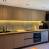 Moderna cocina americana con isla central (frigorífico americano, horno, microondas, lavavajillas, placa de inducción, cafetera, hervidor de agua)