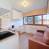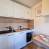 Cocina con 2 placas eléctricas, nevera, mini lavavajillas, microondas, tostadora, hervidor de agua y cafetera.