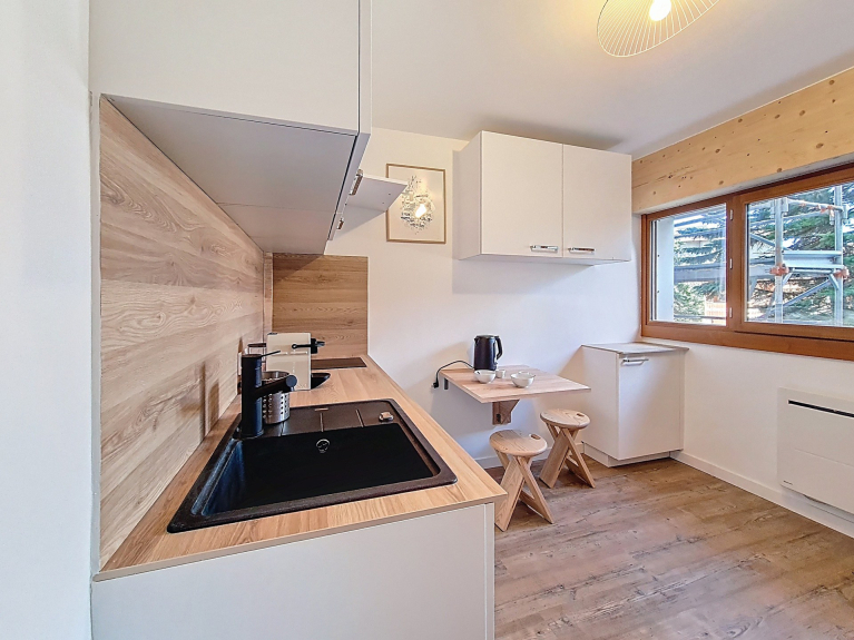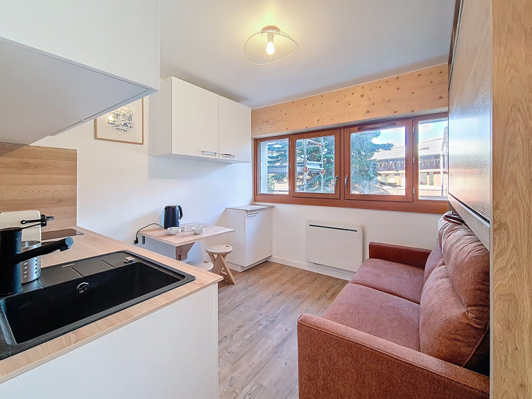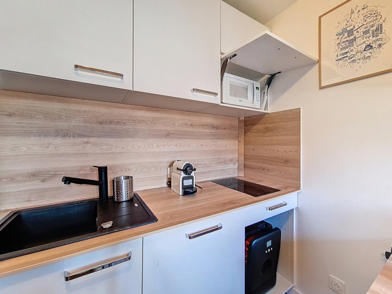 Encantador estudio reformado de 12 m² para 2 personas. Situado en la planta baja con ascensor.