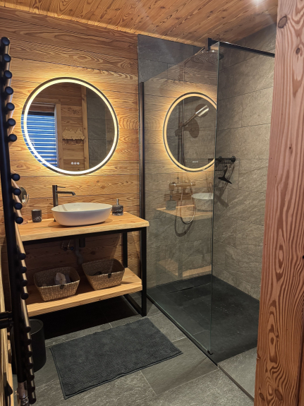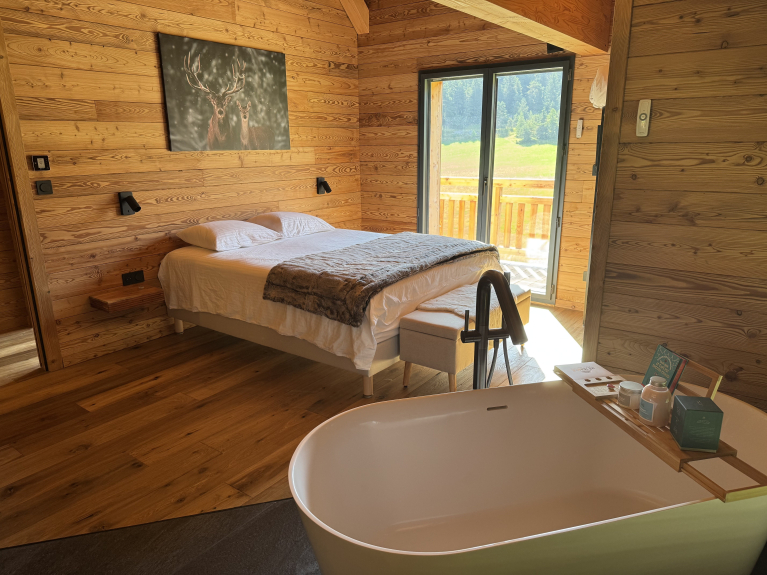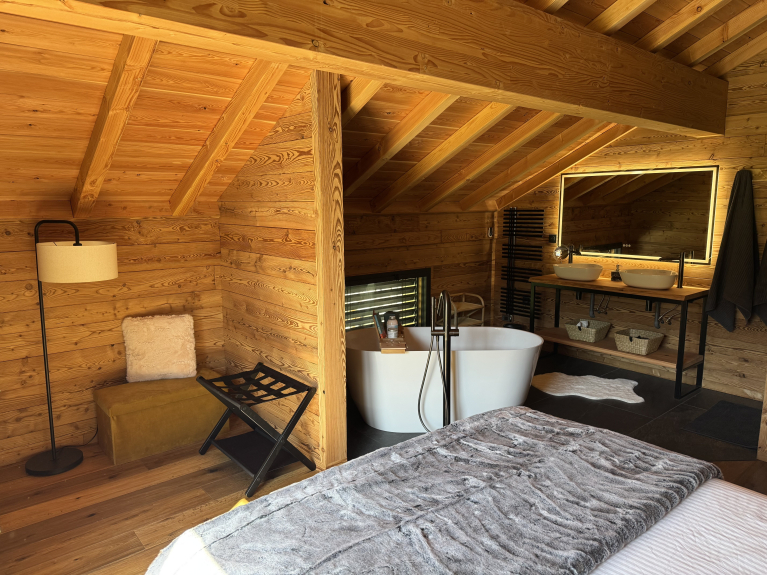 Combinando autenticidad y confort de alta gama, nuestro chalet es una invitación a la relajación, con el beneficio de una vista ininterrumpida de la naturaleza.