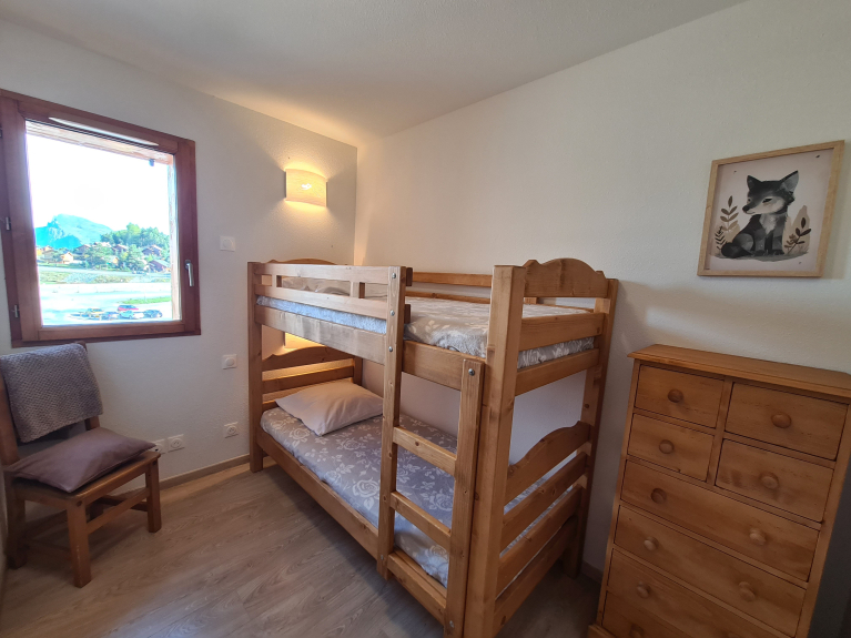 El apartamento de 54 m² está equipado con un dormitorio con 1 cama doble; un dormitorio con 2 camas individuales; un camarote con un juego de literas; una sala de estar; 1 cuarto de baño con ducha y un WC separado.