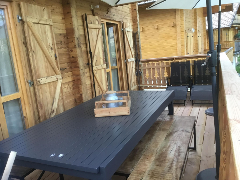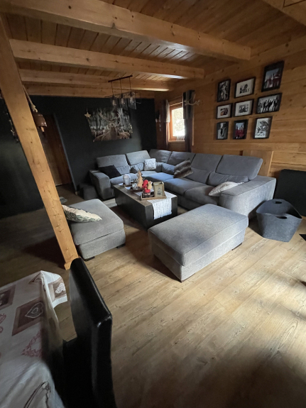 Cuidadosamente decorado, nuestro chalet se distribuye en 3 plantas y consta de un salón de 35 m2 con estufa de leña y sofá XXL, 5 habitaciones, 2 cuartos de baño y una gran terraza con vistas panorámicas a la montaña.
