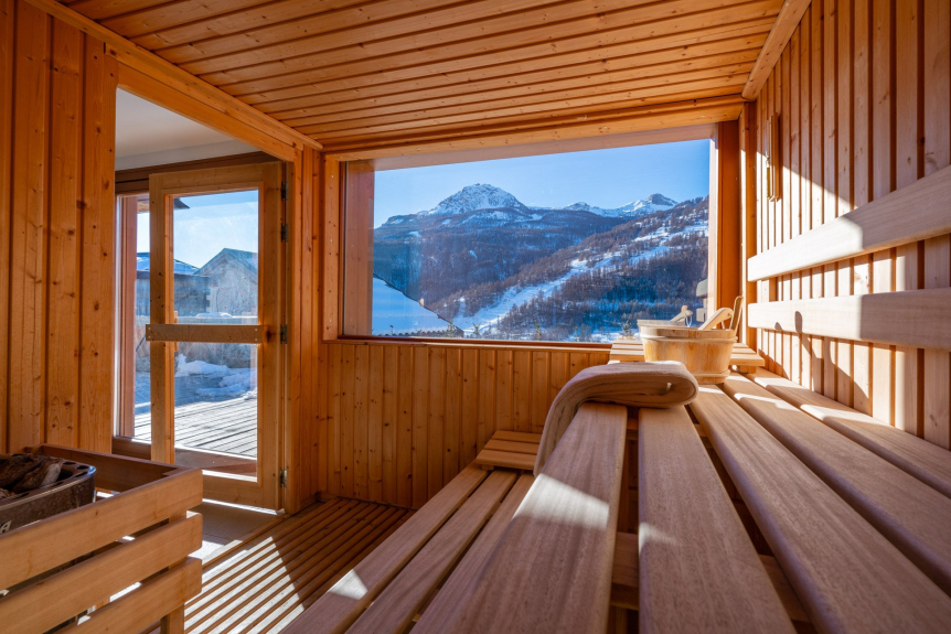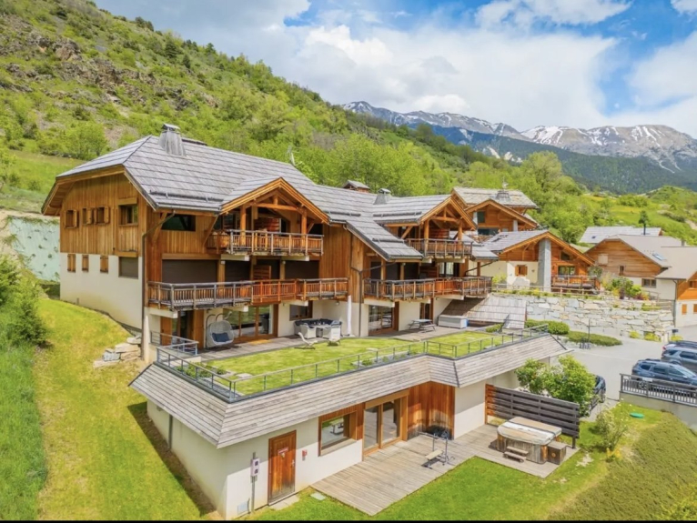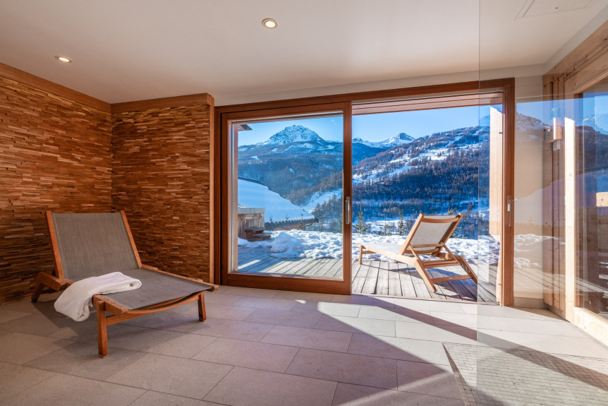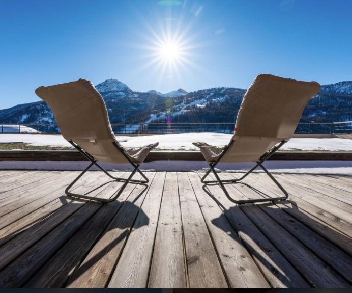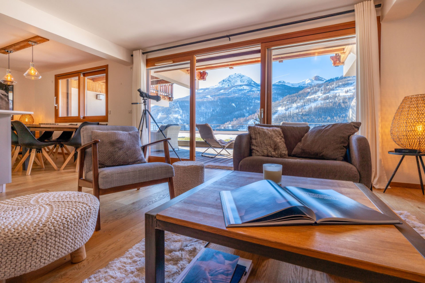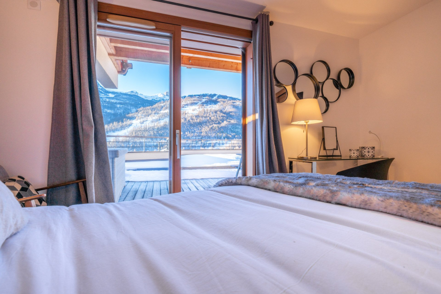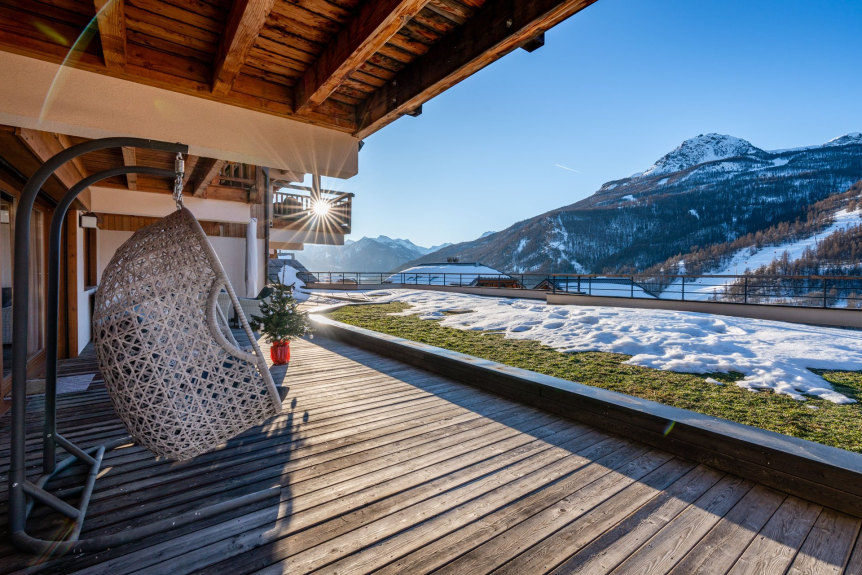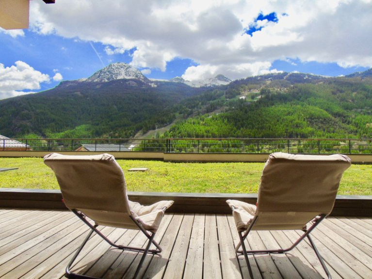 Esta encantadora casa cuenta con una amplia terraza de 250m2 y una magnífica vista de 180° sobre todo el valle, desde Briançon hasta Monêtier-les-Bains, y se enfrenta a la famosa pista de esquí Luc Alphand.