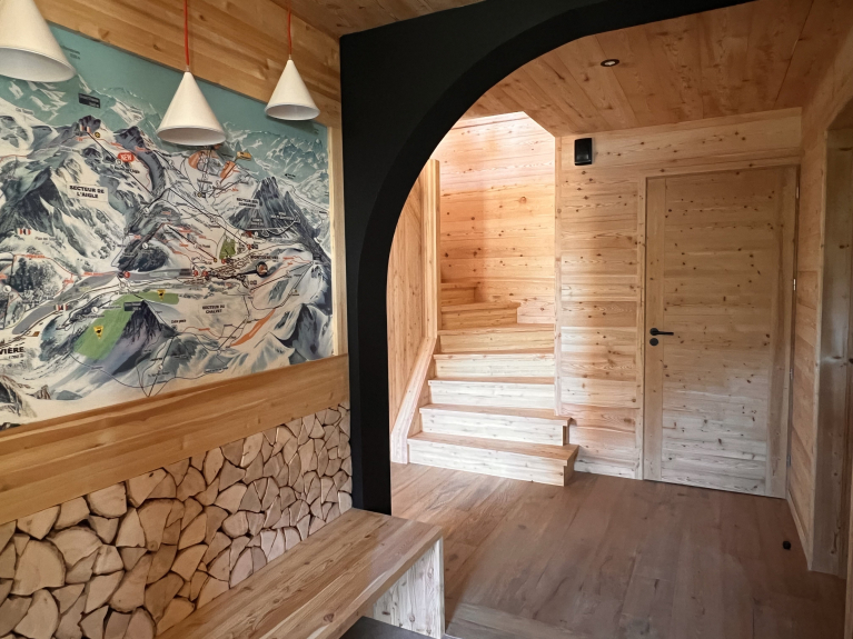 A sólo 4 minutos a pie de la escuela de esquí, la pista de nieve, una tienda de comestibles y el centro del pueblo, este magnífico chalet nuevo de 205 m² combina el encanto alpino con las comodidades de alta gama. Situado en pleno centro del pueblo, en el barrio histórico de los chalets, es el lugar ideal para disfrutar al máximo de su estancia, tanto en verano como en invierno.