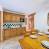 Cocina americana con 4 placas vitrocerámicas, campana extractora, frigorífico, microondas, lavavajillas, cafetera, tostadora, hervidor de agua.