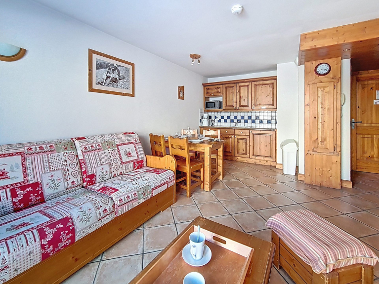 Esta residencia, situada a la entrada de la estación, tiene un aire tradicional saboyano. Venga a descubrir sus pisos funcionales, su espacio de relajación con piscina, sauna, hammam, sala de fitness, tienda de esquí y servicio de transporte gratuito al centro de la estación, a sólo 1 km.