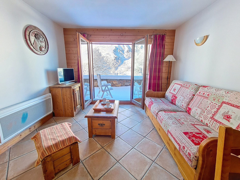 Amplio y luminoso apartamento de dos habitaciones, 32m², 4 plazas. Está situado en la planta baja de la residencia y dispone de una terraza.