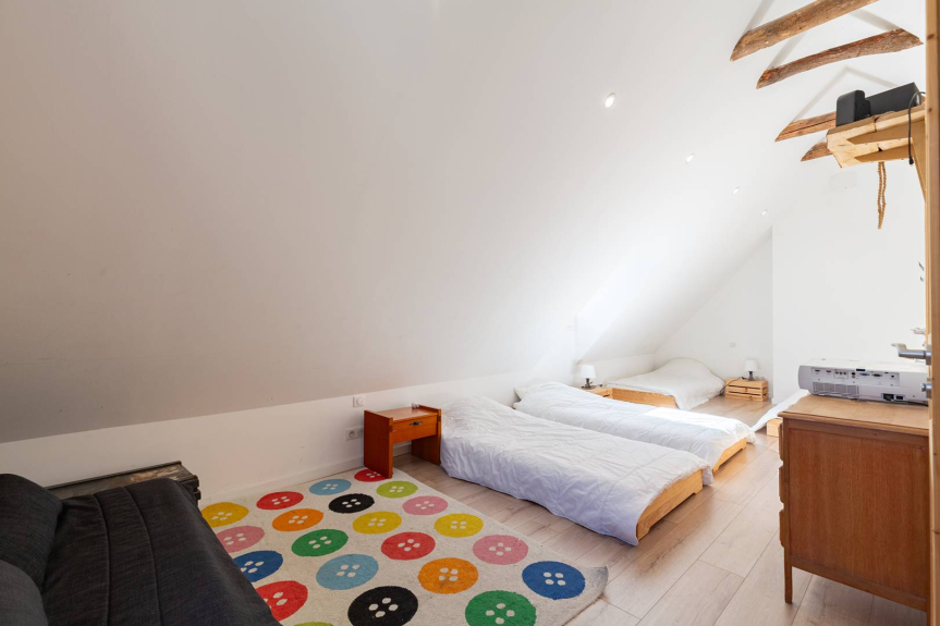 1 dormitorio (4 camas individuales y 1 sofá BZ 120x190) video proyector