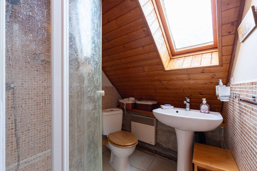1er piso: 1 habitación con cama de 160cm, 1 habitación con 3 camas de 90cm, 1 cuarto de ducha con WC