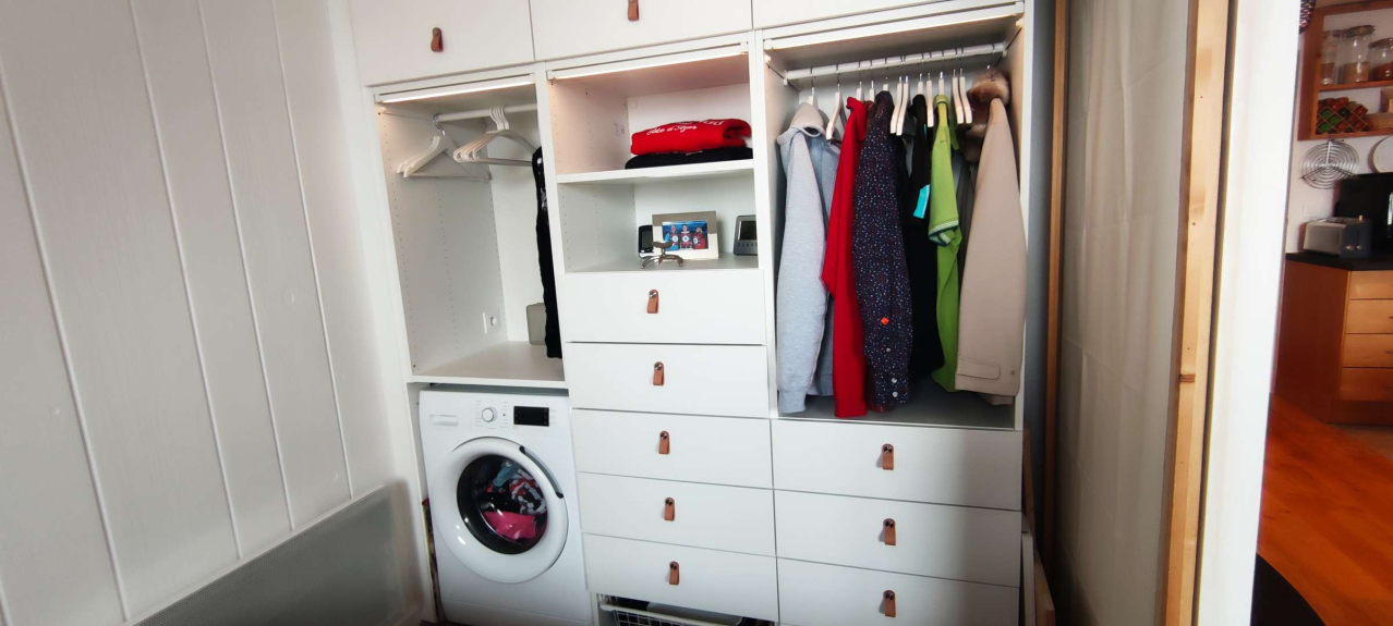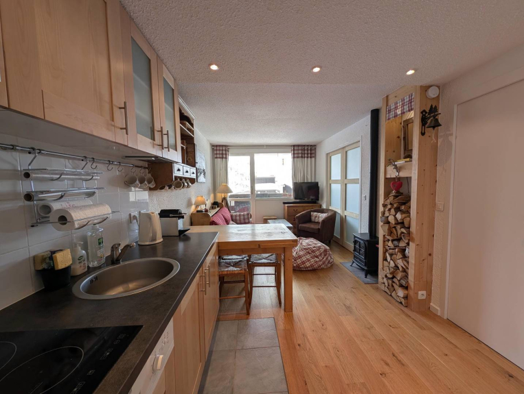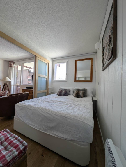 PC201 Piso de 2/3 habitaciones de 37 m², situado en un edificio chalet en el corazón del "Hameau" (estación orientada al sur), a 15 minutos a pie del centro. Con una hermosa vista del centro del Hameau y de las montañas, dispone de un salón que se puede dividir en dos por una puerta corredera para pasar la noche, con un dormitorio doble, vestidor y lavadora. En el pasillo de entrada, una zona para dormir cerrada por una puerta con 2 literas (no aptas para adultos). Ventana. Cuarto de baño y WC separados. Suelo de parquet. Buenas instalaciones. Guardaesquís. Balcón. NO FUMADORES. NO FIESTAS.