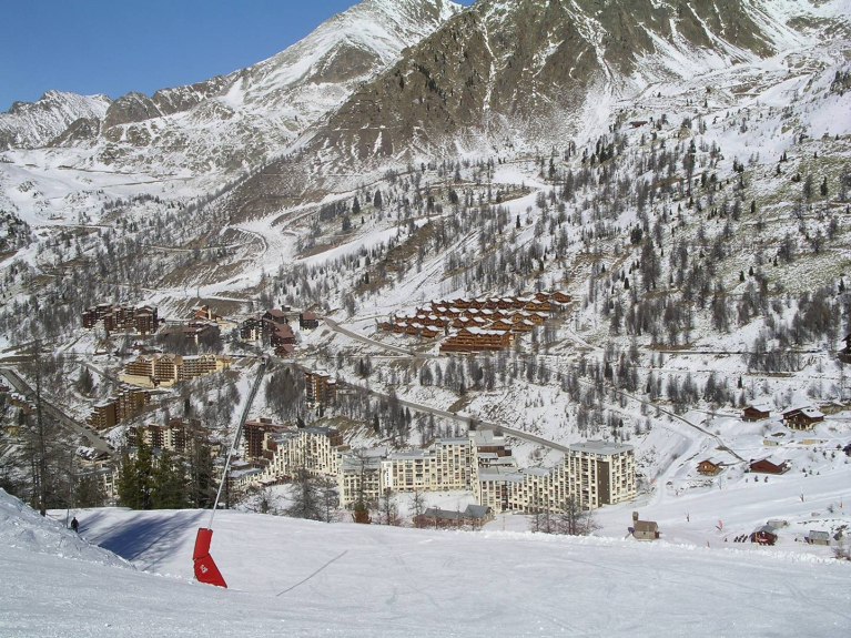 A 150 m de una pista de "esquiadores medios" que conduce a los primeros remontes del dominio esquiable (acceso directo a la nieve desde el edificio).