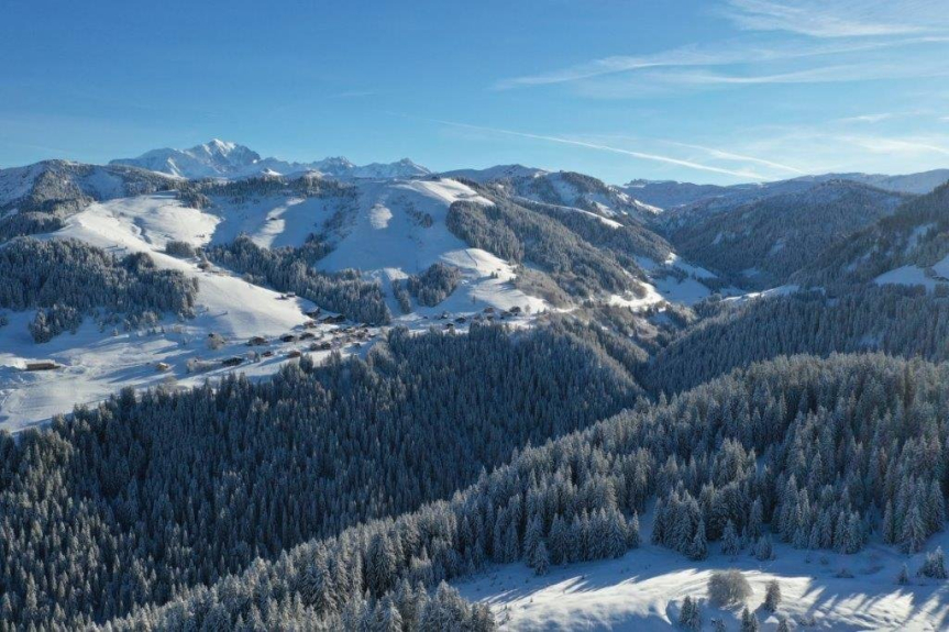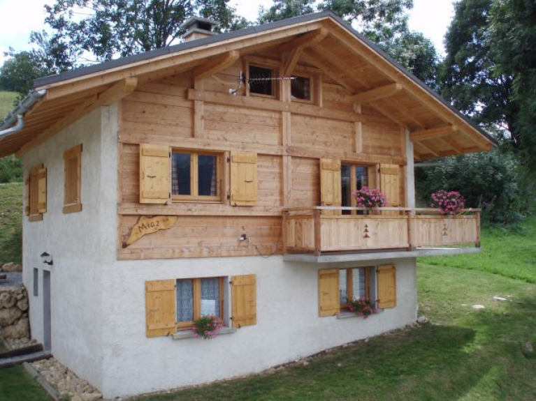 Chalets individuales, magníficas vistas del macizo de Aravis, chalet tranquilo con piscina semiprivada en verano.